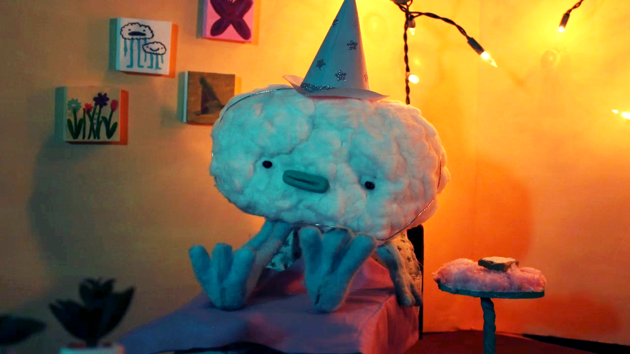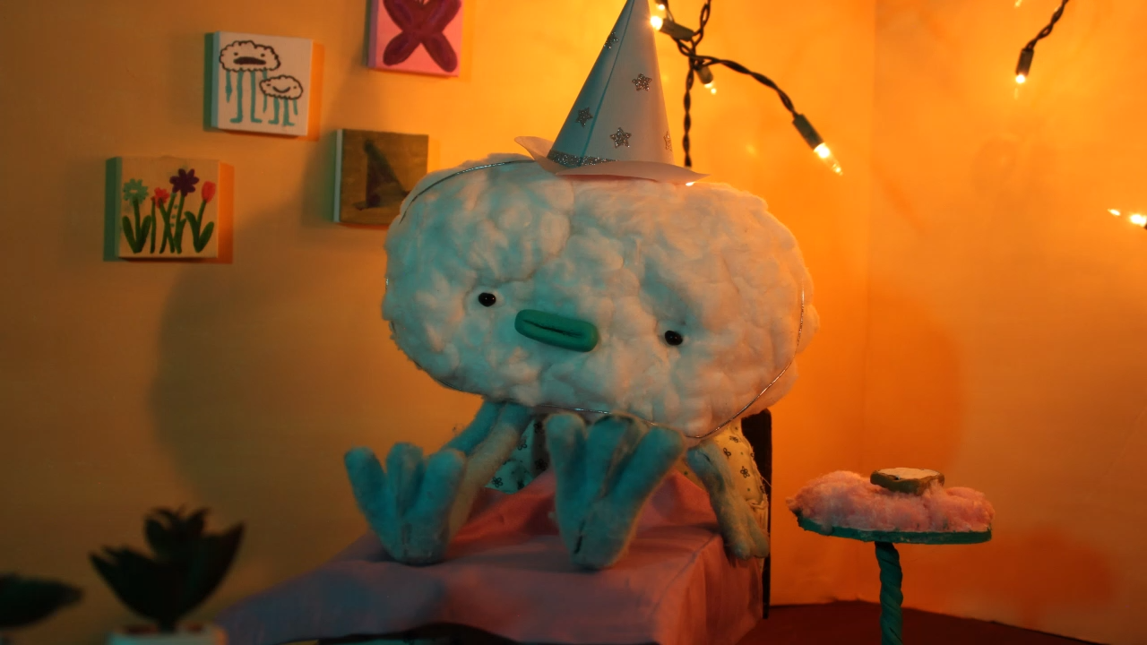 Claude the Cloud Stop Motion Puppet & Set Fabrication Environment Ideation Character Sketches Fabrication Armature building, fabric application, felt needling, clay sculpt, paint, cardboard construction Lighting Tests